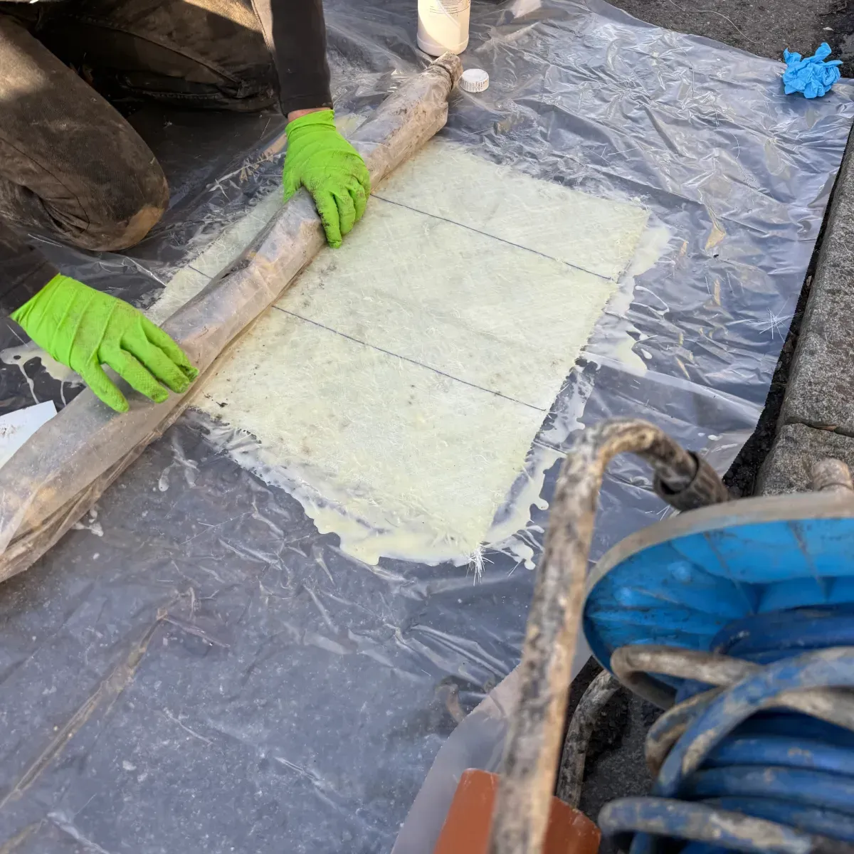 Our patches aren't just "band-aids"; they are fiberglass-reinforced structural repairs that bond permanently to the existing pipe wall.
